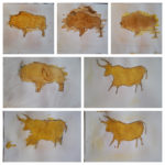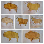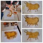 Armati di pigmenti naturali (curcuma, caffé e paprika), gli alunni della terza hanno provato a riprodurre le pitture rupestri della grotta di Lascaux