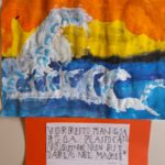 I bambini della classe terza hanno elaborato una “pubblicità progresso” ispirata alla “Grande onda di Kanagawa” di Hokusai per promuovere gli obiettivi 6 e 14 dell’Agenda 2030