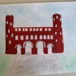 Le Porte Palatine disegnate dai ragazzi della classe quinta, dopo la visita alla Torino Romana